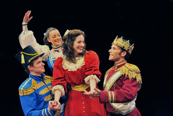 Photo: Sam Rogers as “The Soldier”, Lauren Blane, Dara Cameron as “Marie” and Devin DeSantis as “The Nutcracker” star in The Nutcracker at Marriott Theatre. Photo credit: Peter Coombs and the Marriott Theatre