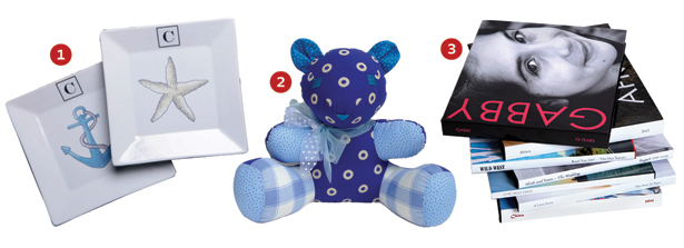 1. Monogram Plates: Made in Chicago by adorable couple Megan Dalbey and Jason Steffen, Dishique Boutique’s bread and butter are these custom dinnerware pieces; each order is designed just for you. $24 for 7.5-inch plate; $44 for 10.5-inch plate; Dishique Boutique