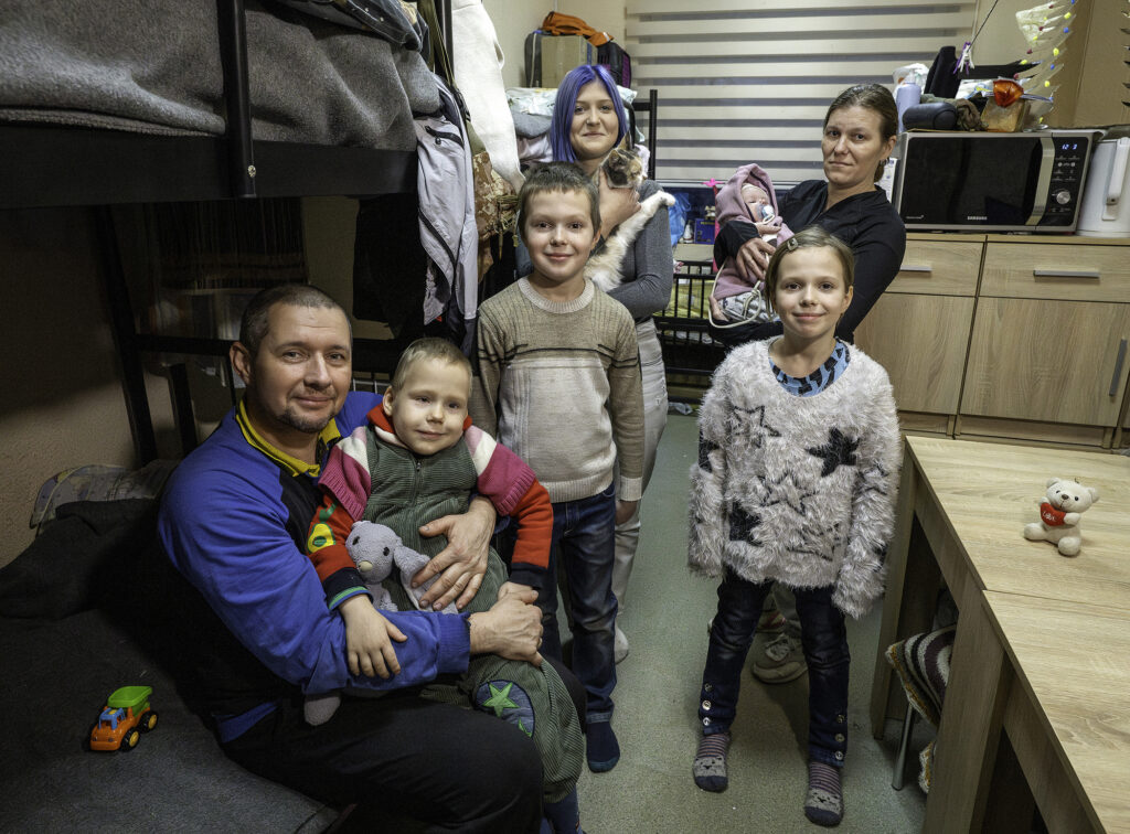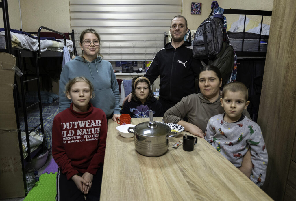 A family displaced by the Russo-Ukrainian War in the Gostyna shelter near Dnipro.