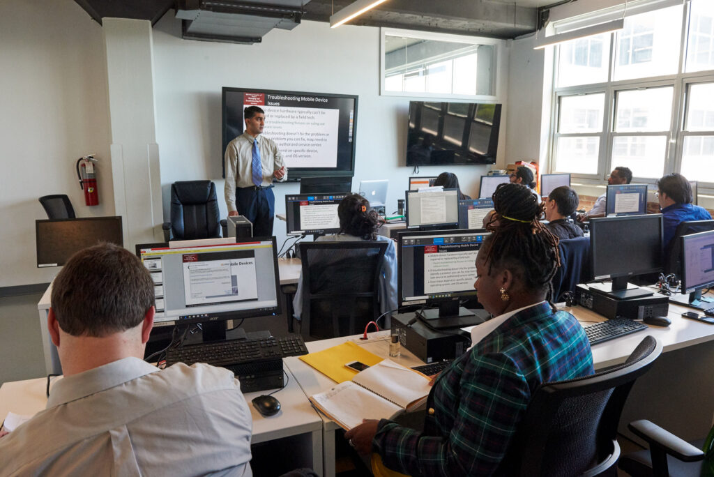 Per Scholas Chicago sees proof of this transformation every day. Their no-cost technology training programs prepare residents for careers in IT Support and Cybersecurity. Learners complete immersive, full-time training in 13 to 15 weeks, earning industry-recognized certifications and developing professional skills that align with real employer demand.