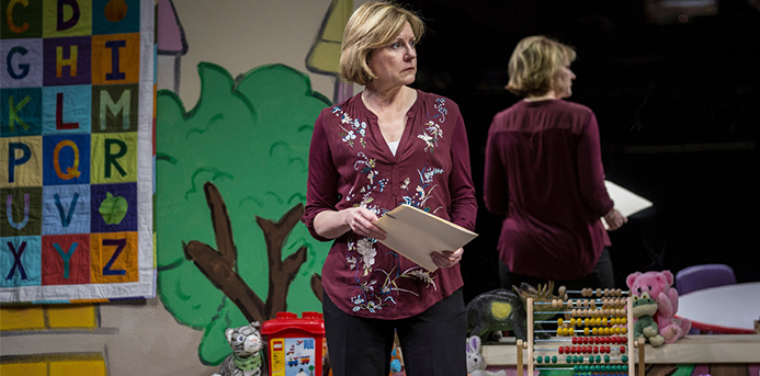 The woman trying to sort out this knotty mess is a state government social worker named Caroline—and she’s the real star of this play, a complex heroine brought to life in a terrific performance by the stalwart Chicago actress Mary Beth Fisher, who has starred in previous Gilman dramas. In the opening scenes, Caroline comes off as something of a tough cookie, talking in a dry, sarcastic tone as she interviews the relatives of this endangered infant girl. As the story progresses, she takes ethical shortcuts, using an “ends justify the means” approach. Clearly, she’s seen a lot of terrible family situations during her career, giving her a somewhat cynical outlook. But as Fisher opens up her character’s emotions over the course of “Luna Gale,” she shows that Caroline remains dedicated to her core mission of saving children from fates that they don’t deserve.