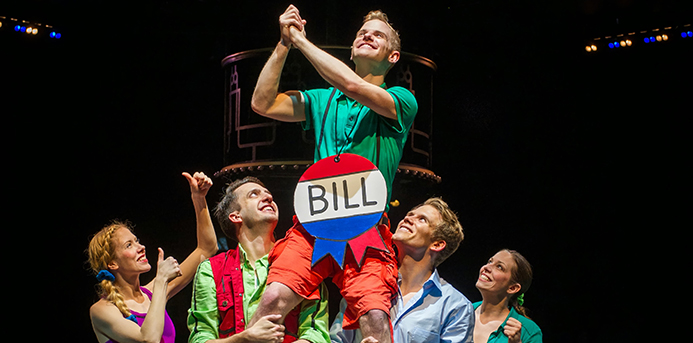 The show is choreographed by Ericka Mac with music direction by Ryan T. Nelson, who, along with the actors, do a fine job of remaining loyal to the original songs while adding a fresh take with silly sight gags and interactive games. The musical number “Ready or Not, Here I Come” is particularly entertaining as the ensembles plays hide and seek with the audience, and “Unpack your Adjectives” takes interactive to a new level (I won’t spoil the fun, but beware of “soggy” if you’re seated in the front row.)